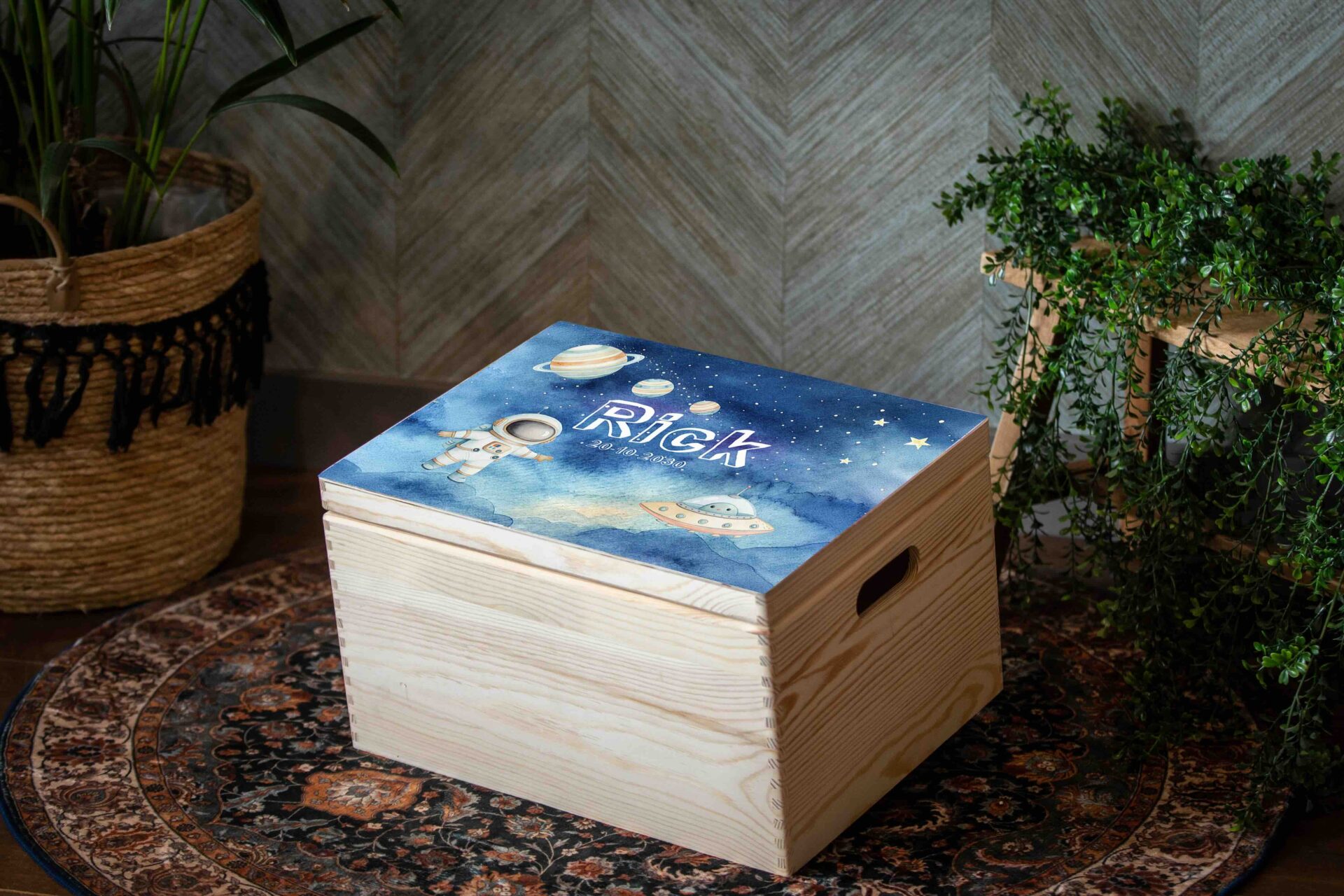 De eerste spulletjes en herinneringen aan jouw kind verdienen het om goed bewaard te blijven. Waar kan dat beter als in een mooie, gepersonaliseerde geboortekist! Vermeld ook de naam en geboortedatum.